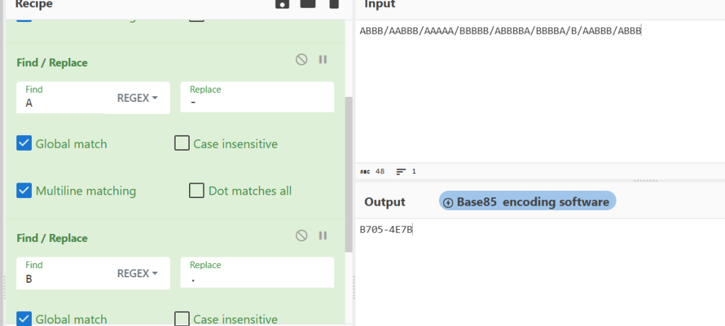第二部分,既然有分隔符且长度各不相同,肯定不是培根密码,那我们尝试摩斯密码替换