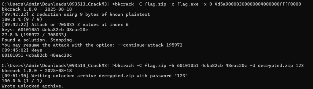bkcrack -C flag.zip -c test.exe -x 0 4d5a90000300000004000000ffff0000
